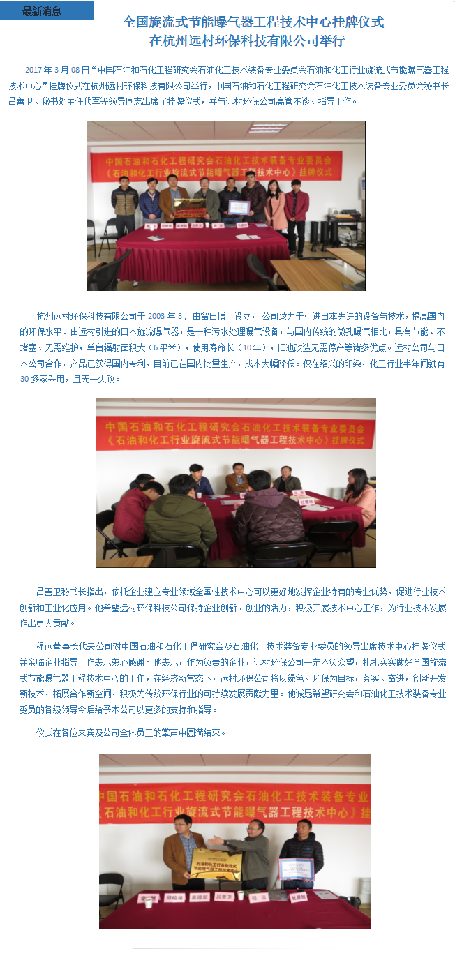 全國(guó)旋流式節(jié)能曝氣器工程技術(shù)中心掛牌儀式